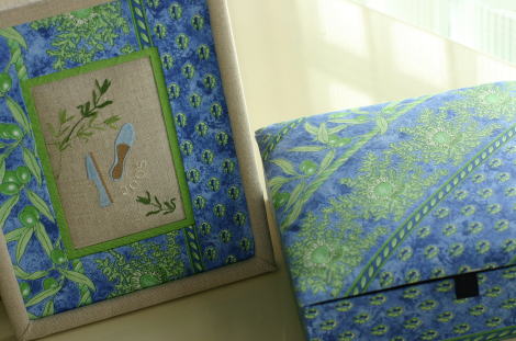 南仏プロヴァンスの生地を使ってオルゴール型の箱と額装を作りました。