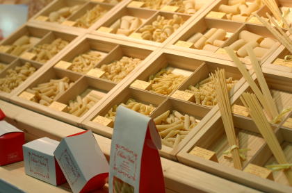 パスタ・ヴィエトリの期間限定、パスタ量り売りショップが渋谷のマークシティーにオープンしているので、行ってみました。あの木のアタッシュケースの実物も見れて満足。アタッシュケースの時と同じ工房にショップのディスプレイ用の箱も作ってもらったとのことで、そちらも見れます。