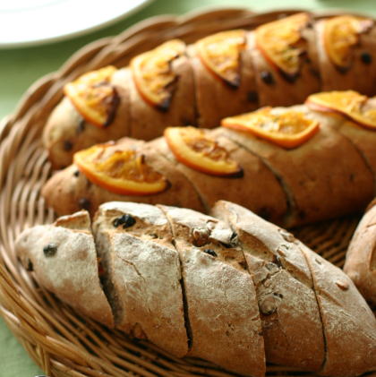 いつものライ麦パンにオレンジのシロップ煮とチョコチップを入れて焼いてみたら、とってもおいしくて。