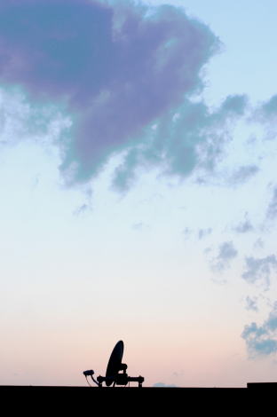 うちのマンションから夕暮れを撮ってみました。パラボナアンテナも空を見ているみたいに思えて。