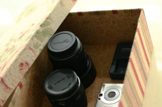 一眼レフカメラは、この写真を撮る時に使っているので、写真では箱の中には入っていません。