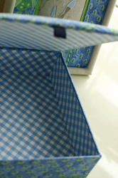 箱の中は、ブルーのギンガムチェックの生地をバイアスに使いました。