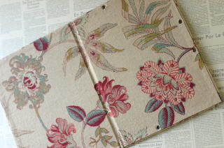 バインダーの中には、茶色のスキバーテックスを貼ろうと思ったのですが、合わせてみると、スキバーの裏面を使った方がイメージ的に気に入ったので、裏返しに貼っています。ちょっと凹凸のある茶色い紙を使ったような仕上がりで、自然な風合いが気に入っています。
