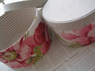 フランスのシスレーヌの生地で作った丸箱を3段重ねました。