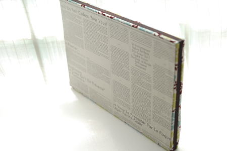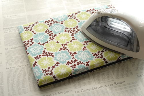 カルトナージュを作る時に、生地のしわのばしをしたり、ホットメルト紙で裏打ちする時にアイロンを使うので、専用の小さなアイロン台を作って使っています。
