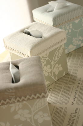 このティッシュボックスは、普通のティッシュの中身を箱から出して束ごと二つに折って入れて使えます。