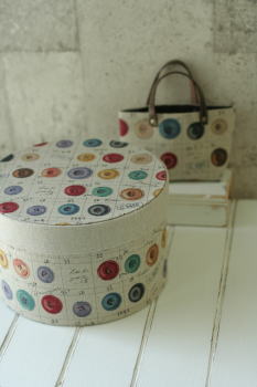 丸箱は、各円の周囲の折り返し生地に細かく切込みを入れるのが大変ですが、私は切込みを入れなくても作れるオリジナルな方法をとっています。