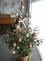 毎年することは、玄関のドアとリビングに飾るリースを作ることと、モミの木((ドイツトウヒ)を買ってきてツリーの飾り付けをすること、あとは玄関の棚の上にちょっとしたクリスマスの置物を飾るくらいでしょうか。