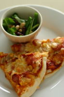 途中で私はパンこね機で、ピザの生地もこね始め、7時半にピザと豆のサラダで休憩。