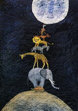 それは、ポーランドのマイケル・グレイニエツ作、「お月さまってどんなあじ?」でした。和紙のような、でこぼこした紙の質感がなんとも言えず味わい深く、印象的でした。そこに描かれていたお月様や動物たちの絵もとても可愛らしく、作品の前に立ってじっと見ていると、何か心に響きました。