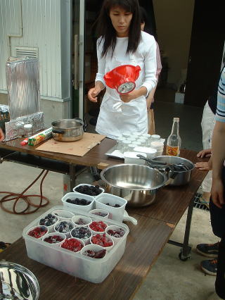コテージ近くのベリー畑でベリー摘みをした後、ジャム工房「berry spoon」でジャム作りを習いました。