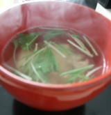 昆布と鰹節でだしをとって、人参、かまぼこ、鶏、小松菜か水菜、へぎ柚子のごく一般的なお雑煮です。