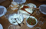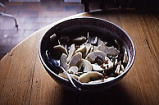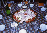 このホームページのWorkのページにも少し書きましたが、フランスの家庭のお料理は、レストランのものとはずいぶん違って、主婦にとって毎日のことなので素朴で作りやすいものが多かったです。だから、昼食と夕食がコース仕立てというと、何かすごいご馳走のように聞こえますが、そんなにびっくりするほど手がかかっているわけではなく、生活の中で自然に作れるものをうまく使っているという印象でした。中には手の込んだお料理もありましたが、簡単なものは本当に簡単で、たとえばオードブルは葉野菜(ほうれん草、マーシュ、トヴィーズ、たんぽぽの葉など、1〜2種類)に手作りドレッシングをかけたサラダとか、骨付きハムの薄切り(日本のハムとは別物で、すごくおいしい)に瓶詰めのコルニッション(小きゅうり)のピクルスを添えたものだったり。ランチの時の簡単オードブルには、ラディッシュに塩とバターをつけてぽりぽりとたくさん食べることもあったりしました。(フランスの細長いラディッシュの典型的な食べ方です。)