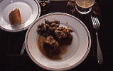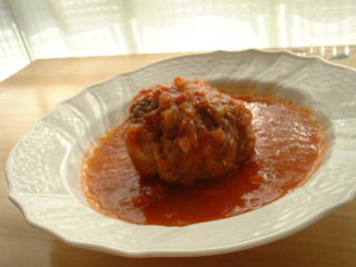 メインディッシュは、オーブンで肉料理と付け合わせの野菜を一緒にローストしたり、お鍋1つでできる煮込み料理というようなざっくりとした感じの素朴なお料理が多かったです。その中でも、このポーピエット(挽き肉のロール巻き)は、フランス家庭料理の代表的なものです。挽き肉の混ぜ物を薄切り肉で巻いて、トマト風味のソースの中で煮るのですが、何かほのぼのとした温かい味がします。