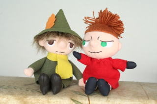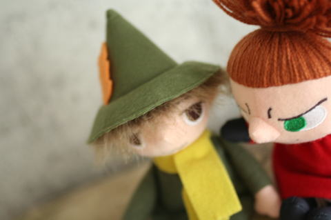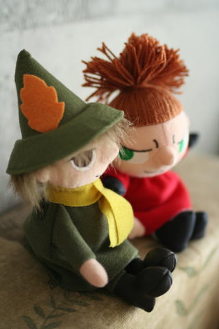 昨日行ったムーミンカフェで、おみやげに娘が買ったスナフキンとリトル・ミーのお人形を写真に撮ってみました。